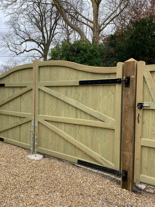 Our softwood driveway gates provide a high-impact, traditional entrance. All timber is pressure-treated to ensure maximum resistance against rot and insect attack, these gates are built with a heavy-duty frame to maintain their structural shape across wide spans.